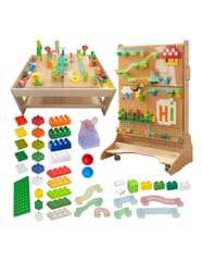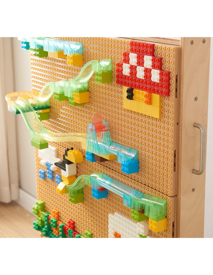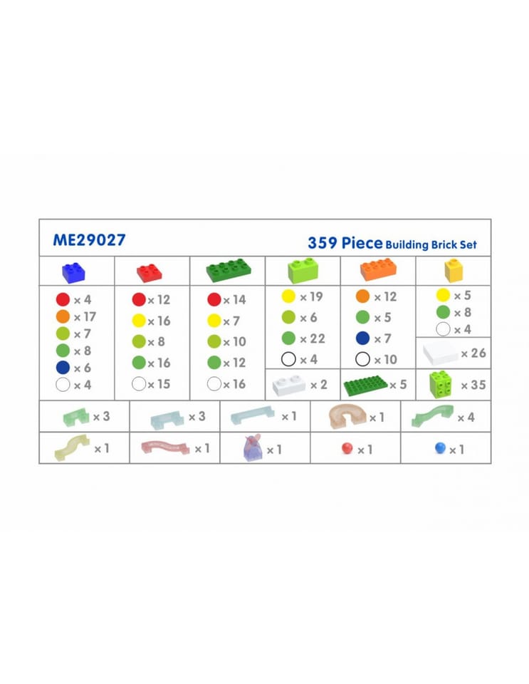 ◾ 342 kolorowe klocki◾ 15 kolorowych elementów toru kulkowego◾ 2 kulki