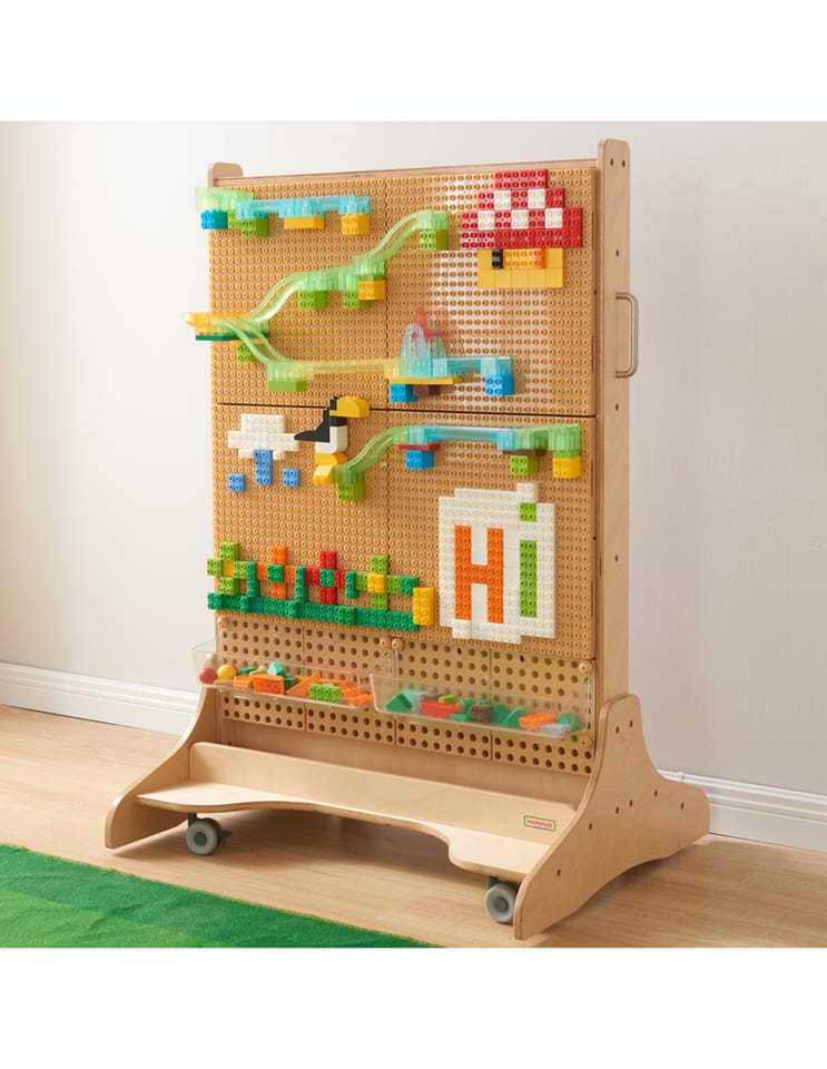 Klocki konstrukcyjne Masterkidz to kreatywny zestaw, który pozwala dzieciom na swobodne budowanie kolorowych wzorów, obrazków i torów kulkowych. Dzięki specjalnej konstrukcji klocków, maluchy mogą łatwo wciskać je w tablicę, tworząc własne kompozycje i rozwijając wyobraźnię. Zestaw zachęca do samodzielnej zabawy, ale świetnie sprawdzi się także podczas wspólnego tworzenia z rówieśnikami lub dorosłymi.