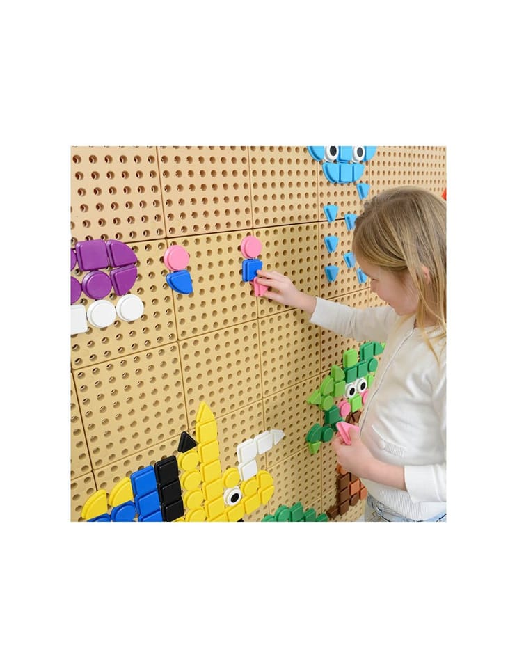 Zestaw kolorowych kołeczków w kształcie figur geometrycznych, które można łatwo przyczepiać do specjalnych tablic edukacyjnych STEM. Zabawka zachęca dzieci do tworzenia własnych obrazków, zwierzątek, pojazdów i fantazyjnych wzorów, rozwijając przy tym kreatywność i wyobraźnię. Dzięki różnorodności kształtów i barw każda zabawa staje się nową przygodą, a kołeczki idealnie sprawdzą się zarówno w domu, jak i na zewnątrz
