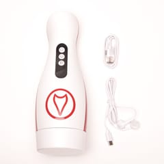 Masturbator Z Wibracją Ssaniem Cyberskóra Ładowany Usb Biały