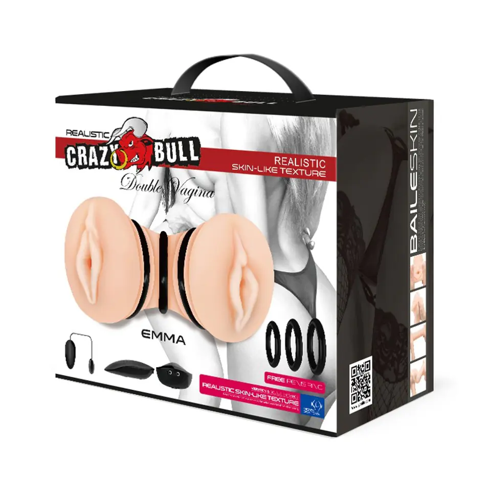 Duży, realistyczny masturbator z dwoma otworami w kształcie waginy. Wykonany z materiału przypominającego realistycznę skórę. Prążkowany, ciasny tunel wewnętrzny zapewnia niesamowite doznania. Masturbator jest wyposażony w wibracje, którymi można sterować za pomocą pilota na przewodzie.W komplecie 3 różnej średnicy pierścienie erekcyjne gratisDługość całkowita 19cmŚrednica 8,5cmMateriał: TPR