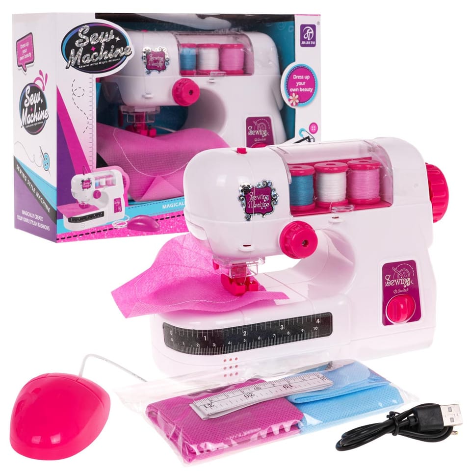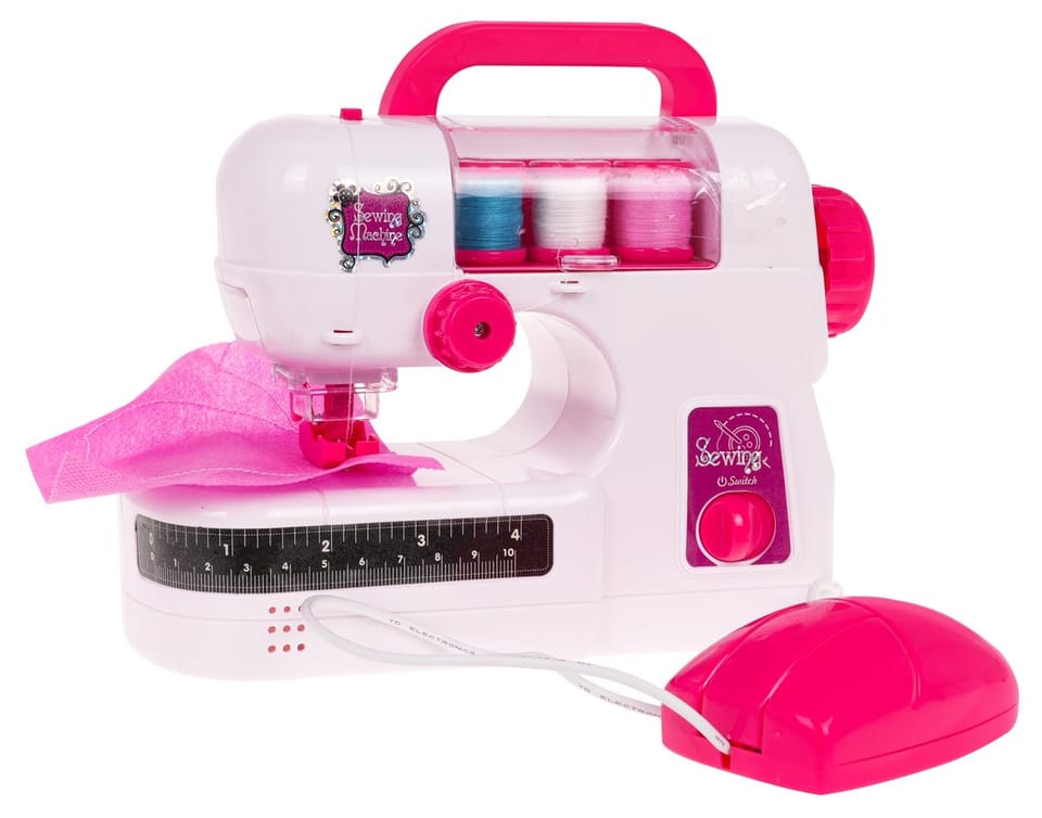 Interaktywna maszyna do szycia z efektami dźwięku i światła dla dzieci od 3-go roku życia. Zabawka wykonana z solidnych materiałów i bezpieczna dla dziecka. Maszyna posiada igłę w zabudowie, która zabezpiecza, przed skaleczeniem się dziecka. Zabawkę wyposażono w praktyczną myszkę uruchamiającą maszynę, pokrętło do podnoszenia igły i podnośnik stopki. Podczas pracy maszyny, świeci się światełko. W zestawie z maszyną znaleźć możemy również 3 szpulki nici, nawlekacz do nici, metr krawiecki i 2 kawałki materiału. Zabawa maszyną wspomaga rozwój koordynacji wzrokowo-ruchowej i kreatywności. Maszyna zasilana jest bateriami typu 4 x 1,5V AA, baterii brak w zestawie. Funkcje zestawu:– solidnie wykonana z najlepszej jakości materiałów,– bezpieczna dla dziecka,– igła zabudowana, by dziecko nie skaleczyło się,– naprawdę szyje,– posiada myszkę uruchamiającą pracę maszyny, pokrętło do podnoszenia igły, podnośnik stopki,– akcesoria do szycia: nici, 2 x materiał, nawlekacz do nici, metr krawiecki,– łatwa w użyciu,– dźwięki pracy maszyny,– palące się światełko podczas pracy maszyny. | |
