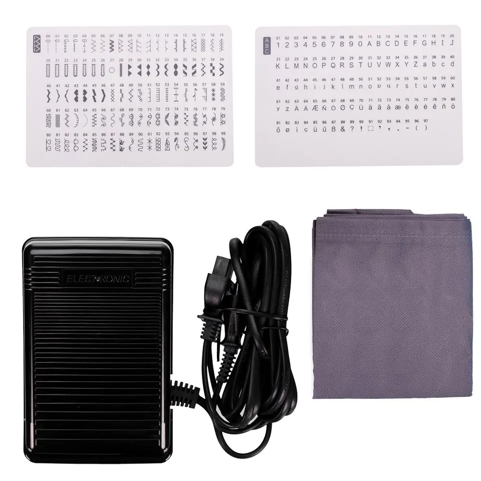 | Dołączone akcesoria do maszyny do szycia: | Rozpruwacz, Podkładka pod szpulkę, Krążek przytrzymujący szpulkę (duży), Miękki pokrowiec, Krążek przytrzymujący szpulkę (mały), Rozrusznik nożny |