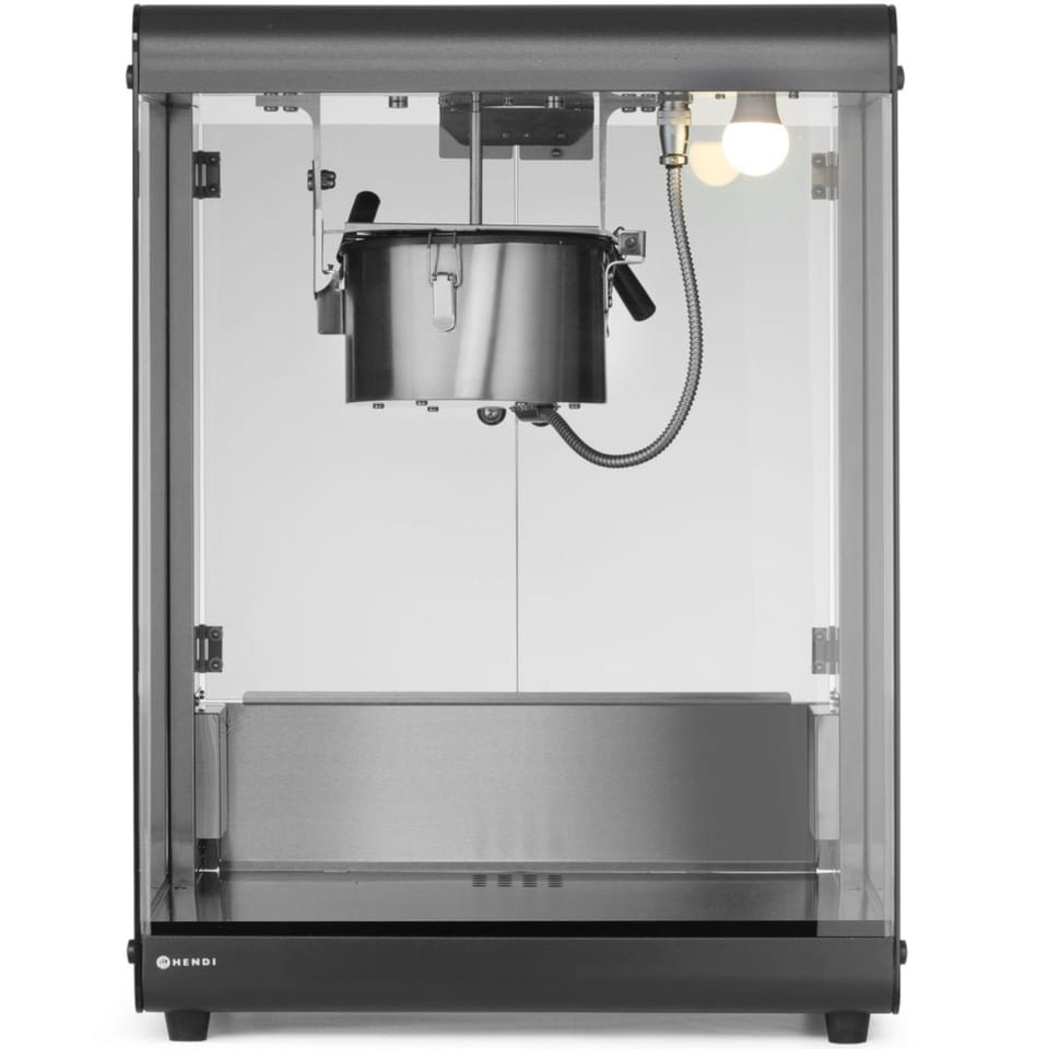 Kod produktu: 1030717Urządzenie do popcornu HENDI posiada solidną ramę ze stali węglowej oraz obudowę z hartowanego szkła, zapewniającą wytrzymałość i doskonałą ekspozycję popcornu. W zestawie znajduje się garnek do popcornu z systemem mieszającym zapewniającym równomierne pękanie ziaren. Podgrzewana podstawa utrzymuje ciepło, a podświetlane wnętrze uzupełnia estetykę. Praktyczne dodatki, takie jak uchylne drzwi serwisowe z hartowanego szkła, szufelka do nabierania popcornu oraz szuflada na okruchy, ułatwiają obsługę urządzenia.Cechy produktu: