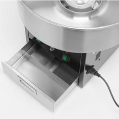 Kod producenta: 1030774Maszyna do waty cukrowej marki Hendi sprawdzi się w trakcie imprez organizowanych zarówno w lokalach gastronomicznych jak i w domowym zaciszu. Misa wykonana została ze stali nierdzewnej i nadaje się do mycia w zmywarce. Dodatkowa szuflada pomieści przydatne akcesoria. Maszyna posiada oddzielny włącznik prądu oraz ogrzewania ze zintegrowanymi lampkami kontrolnymi. Bezpiecznik przeciwprzeciążeniowy zabezpiecza silnik przed spaleniem w przypadku jego zablokowania. W zestawie znajduje się dozownik cukru. Urządzenie posiada wbudowany woltomierz, który pokazuje rzeczywiste napięcie.Cechy produktu: