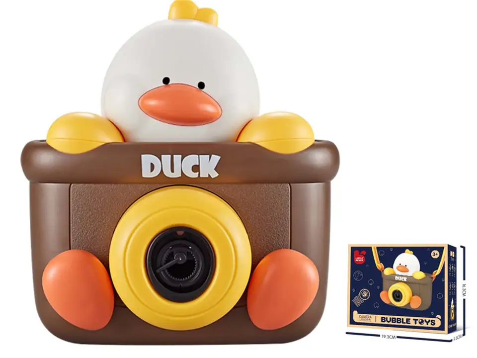 Maszynka do Baniek Mydlanych w kształcie Aparatu z Kaczuszką dla dzieci 3+ Płyny do baniek + Pasek na ramię