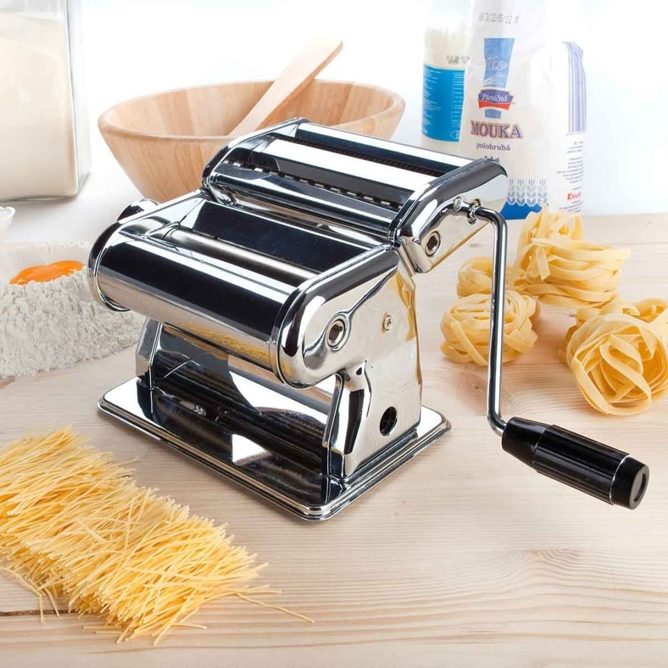 Maszynka do makaronu Banquet Culinaria służy do szybkiego i wygodnego przygotowywania domowego makaronu oraz rozwałkowywania ciasta na pożądaną grubość. To praktyczne urządzenie sprawdzi się idealnie w każdej kuchni, umożliwiając przygotowanie świeżego makaronu, ciasta na lasagne czy pierogi.
