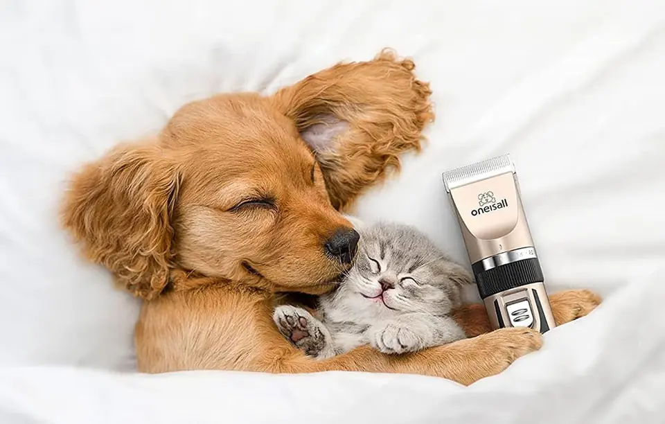 Zestaw Trymer / maszynka do strzyżenia + nożyczki + grzebień dla zwierząt Oneisall P2 (złota)