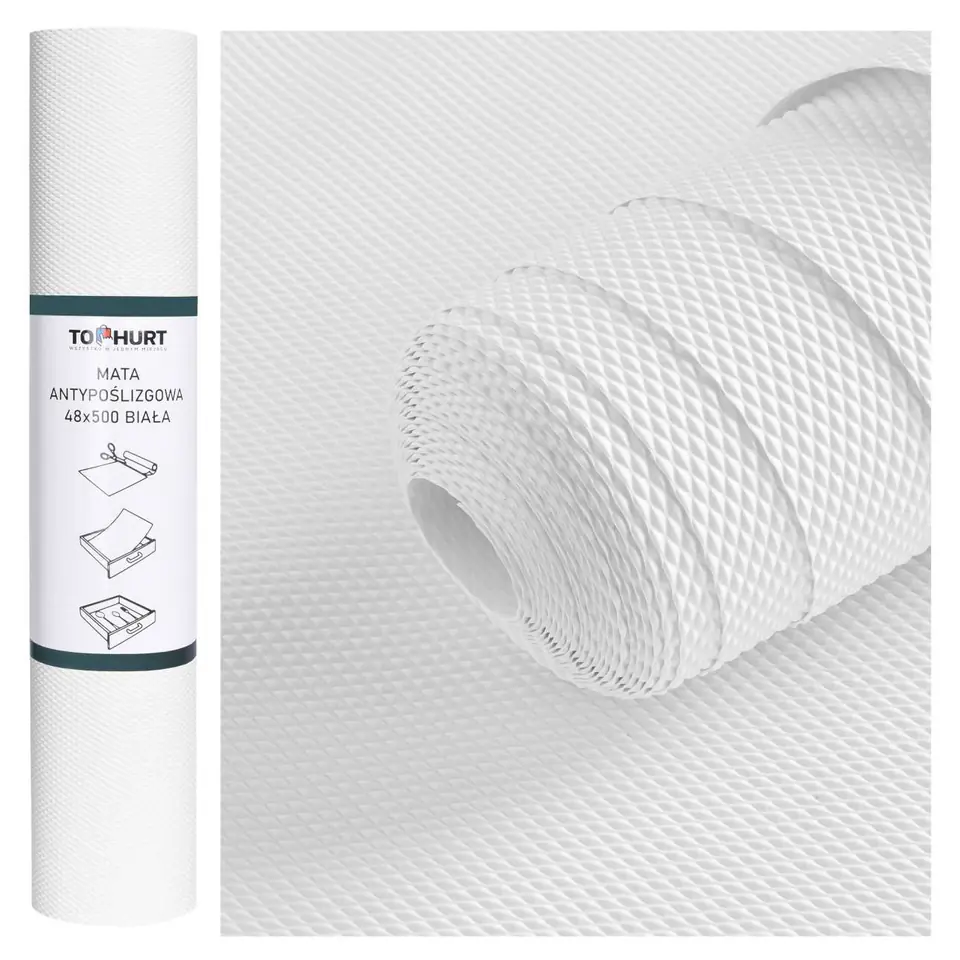 Mata antypoślizgowa do szuflad 48 x 500 cm białaWymiary: 48 x 500 cm | Kolor: biała Jeśli poszukujesz skutecznego sposobu na zachowanie porządku w szufladach, warto rozważyć zakup antypoślizgowej maty. Dzięki efektywnej fakturze i wysokim parametrom technicznym, skutecznie zapobiega poruszaniu się przedmiotów w szufladzie. Dodatkowo, maty antypoślizgowe są ochronne i chronią szuflady przed zarysowaniami i uszkodzeniami.Mata antypoślizgowa jest uniwersalna i pasuje do różnych typów szuflad. Można ją łatwo przyciąć do własnych potrzeb i wyciąć w dowolne kształty. Jest również łatwa do utrzymania w czystości, a materiał, z którego jest wykonana, jest bezpieczny i bezzapachowy.Mata antypoślizgowa jest odporna na wilgoć i tłumi hałaśliwe dźwięki, co czyni ją idealnym rozwiązaniem do szuflad w kuchni lub łazience. Jej przyjazny dla oka kolor pozwala na dopasowanie do każdego wnętrza, co sprawia, że mata antypoślizgowa nie tylko jest funkcjonalna, ale także estetyczna. ZaletyAntypoślizgowa - Zapobiega poruszaniu się zawartości szufladOchronna - Doskonałe do zabezpieczania szufladEfektywna faktura maty - wysokie parametry techniczneUniwersalna o szerokim zastosowaniuMożliwość docięcia do własnych potrzebMożliwość wycinania dowolnych kształtówŁatwa do utrzymania w czystościBezpieczny, bezzapachowy materiałOdporna na wilgoćTłumi hałaśliwe dźwiękiPrzyjazny dla oka kolor SpecyfikacjaMateriał: tworzywo sztuczneKolor: białyWaga: 1,25 kg WymiarySzerokość: 48 cmDługość: 500 cm Informacje dodatkowePrzedstawione kolory należy traktować poglądowo - mogą odbiegać od rzeczywistych ze względu na różne ustawienia monitorów oraz proces obróbki zdjęć. Rzeczywiste wymiary mogą się różnić od podanych wyżej. Tolerancja błędów może wynosić +/- 5%.Marka:GockowiakKod EAN:328521MGKolor:białyMateriał: tworzywo sztuczneSzerokość:48 cmWysokość pokrywy:500 cmWaga:1,25 kg