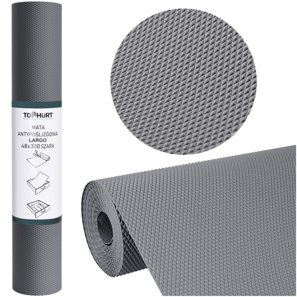 Mata antypoślizgowa do szuflad LARGO 48 x 300 szaraKolor: szary Praktyczne i uniwersalneJeśli chcesz utrzymać porządek w szufladach, warto zainteresować się antypoślizgowymi matami. Ich efektywna faktura i wysokie parametry techniczne skutecznie zapobiegają poruszaniu się zawartości szuflad. Dodatkowo, mata antypoślizgowa jest ochronna i doskonale zabezpiecza szuflady przed zarysowaniami i pęknięciami. Maty antypoślizgowe są również uniwersalne, dzięki czemu mogą być stosowane w różnych typach szuflad.Mata antypoślizgowa może być łatwo przycięta do własnych potrzeb, dzięki czemu pasuje do każdej szuflady, a także wycinana w dowolne kształty. Co więcej, łatwo ją utrzymać w czystości, a bezpieczny, bezzapachowy materiał, z którego jest wykonana, sprawia, że jest przyjazna dla użytkownika.Mata antypoślizgowa jest również odporna na wilgoć i tłumi hałaśliwe dźwięki, co czyni ją idealnym rozwiązaniem do szuflad w kuchni lub łazience. Dodatkowo, jej przyjazny dla oka kolor pozwala na dopasowanie do każdego wnętrza, co sprawia, że mata antypoślizgowa nie tylko jest funkcjonalna, ale także estetyczna. Zalety:✅Antypoślizgowa - Zapobiega poruszaniu się zawartości szuflad✅Ochronna - Doskonałe do zabezpieczania szuflad✅Efektywna faktura maty - wysokie parametry techniczne✅Uniwersalna o szerokim zastosowaniu✅Możliwość docięcia do własnych potrzeb✅Możliwość wycinania dowolnych kształtów✅Łatwa do utrzymania w czystości✅Bezpieczny, bezzapachowy materiał✅Odporna na wilgoć✅Tłumi hałaśliwe dźwięki✅Przyjazny dla oka kolor Idealnie dobrana faktura maty to podstawaMata antypoślizgowa marki Gockowiak posiada fakturę o wysokich parametrach przyczepności, trwałości i odporności na ścieranie. Charakterystyczne wypukłe wzory gwarantują wysoką antypoślizgowość. Maty są dodatkowo łatwe w czyszczeniu i utrzymaniu w czystości. Specyfikacja:Materiał: tworzywo sztuczneKolor: szaryWaga: 1,25 kgWymiary:Szerokość: 48 cmDługość: 300 cm Szerokie zastosowanie:✅ Szafka kuchenna✅ Szuflada kuchenna✅ Szuflada z narzędziami✅ Lodówka✅ Stół✅ Podstawka pod kubki✅ Szafka na buty✅ Biblioteczka UWAGA | Przedstawione kolory należy traktować poglądowo, mogą odbiegać od rzeczywistych ze względu na różne ustawienia monitorów oraz proces obróbki zdjęć ♦ Rzeczywiste wymiary mogą się różnić od podanych w opisie. Tolerancja błędów może wynosić +/- 0,5 cm