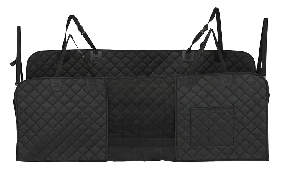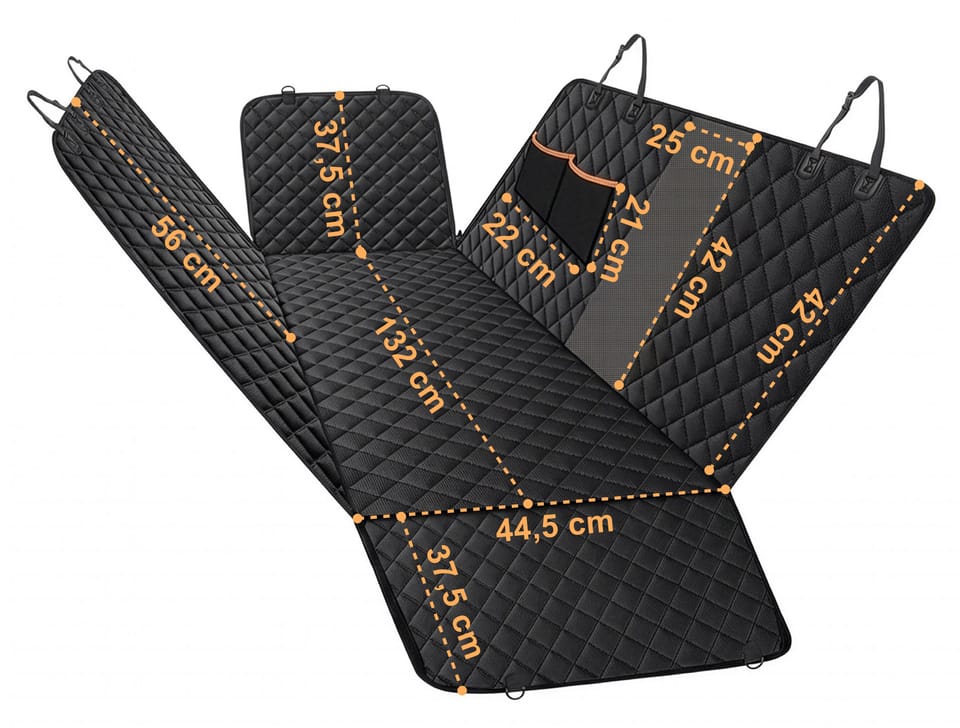 Mata samochodowa dla psa GOLDEN⭐️ Transporter samochodowy dla psa na siedzenie lub do bagażnika⭐️ Wytrzymała tkanina Oxford z wodoodporną powłoką⭐️ Wymiary maty 132 x 56 x 44,5 cm⭐️ Pasy montażowe w zestawie⭐️ Wyposażona w okienko siatkowe i kieszenie na akcesoria⭐️ Zakup od producenta✨ Mata samochodowa dla psa Golden – Bezpieczna podróż Twojego pupila ✨Mata samochodowa dla psa Golden to praktyczne rozwiązanie, które skutecznie chroni wnętrze auta, a jednocześnie zapewnia Twojemu psu wygodę w trakcie jazdy. Wodoodporny materiał, solidna konstrukcja oraz antypoślizgowy spód gwarantują stabilność i ochronę przed zabrudzeniami czy uszkodzeniami tapicerki. Produkt jest wyjątkowo prosty w montażu, pasuje do większości modeli samochodów i ułatwia utrzymanie porządku, eliminując stres związany z sierścią, błotem czy zarysowaniami siedzeń.Cechy:Kolor: czarnyKonstrukcja: solidna, pikowana, z możliwością składaniaMocowanie: pasy z klamrami na zagłówki, linki stabilizująceW zestawie: mata, pasy montażowe, kieszenie na akcesoria, panel mesh (przednie siatkowe okienko dla pupila)Materiał: tkanina Oxford - wzmocniona wodoodporną powłoką, bawełna PP, materiał podszewkowy - tkanina 210D, siatka antypoślizgowa PVC Wymiary:Wysokość: 42 cm - 56 cmSzerokość: 132 cmGłębokość: 44,5 cmWymiary siatki: 42 cm x 25 cm Informacje dodatkowePrzedstawione kolory należy traktować poglądowo - mogą odbiegać od rzeczywistych ze względu na różne ustawienia monitorów oraz proces obróbki zdjęć. Rzeczywiste wymiary mogą się różnić od podanych wyżej. Tolerancja błędów może wynosić +/- 5%.Marka:4wheelzKod EAN:5902340332146Kolor:czarnyWysokość:56 cmSzerokość:132 cm