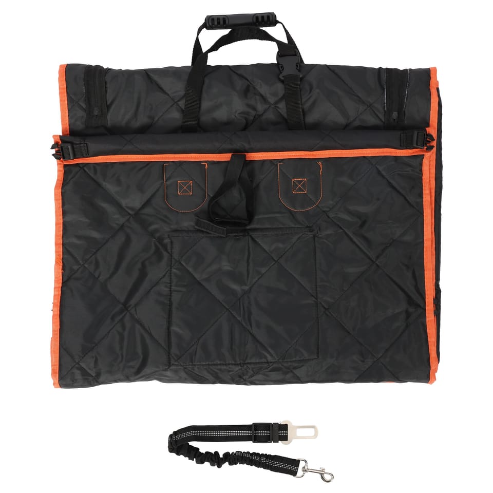 Mata samochodowa dla psa MALTAN⭐️ Transporter samochodowy dla psa lub kota⭐️ Wytrzymała tkanina Oxford z wodoodporną powłoką⭐️ Wymiary maty 58,5 x 45,5 x 52 cm⭐️ Regulowana smycz w zestawie⭐️ Możliwość przymocowania do samochodowego pasa bezpieczeństwa⭐️ Składana konstrukcja dla łatwego przechowywania⭐️ Zakup od producenta✨ Mata samochodowa dla psa Maltan – Bezpieczna podróż Twojego pupila ✨Mata samochodowa dla psa Maltan to praktyczne i niezawodne rozwiązanie dla opiekunów, którzy chcą zapewnić swojemu czworonogowi spokojną, wygodną i przede wszystkim bezpieczną jazdę. Chroni tapicerkę przed zabrudzeniami i sierścią, zwiększa bezpieczeństwo pupila dzięki solidnej konstrukcji oraz regulowanej smyczy, a dodatkowo ułatwia utrzymanie czystości w samochodzie. Wodoodporny materiał, szybki montaż i uniwersalne dopasowanie sprawiają, że sprawdzi się zarówno podczas codziennych przejazdów, jak i dłuższych wypraw.Cechy:Materiał: tkanina Oxford, wzmocniona wodoodporną powłokąKolor: czarny z elementami w kolorze pomarańczowymKonstrukcja: solidna, z możliwością składaniaZabezpieczenia: regulowana smycz, uchwyty do pasów bezpieczeństwaW zestawie: mata, wkładka dopasowana do wnętrza maty, pasy montażowe, regulowana smycz, kieszonka na akcesoria Wymiary:Wysokość: 44 cm - 52 cmSzerokość: 58,5 cmGłębokość: 45,5 cm Informacje dodatkowePrzedstawione kolory należy traktować poglądowo - mogą odbiegać od rzeczywistych ze względu na różne ustawienia monitorów oraz proces obróbki zdjęć. Rzeczywiste wymiary mogą się różnić od podanych wyżej. Tolerancja błędów może wynosić +/- 5%.Marka:4wheelzKod EAN:5902340332139Kolor:czarny, pomarańczowyWysokość:52 cmSzerokość:58,5 cm