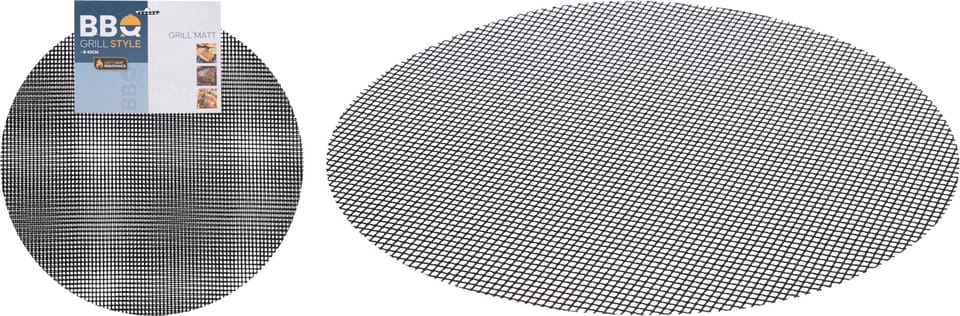Parametry:- Wymiary ok.: 40 cm (śr.)Grubość ok.: 1 mmMateriał: włókno szklane, powłoka PTFESzerokość oczek: 5x5mm Kolor: czarnyWaga netto: 0,150 kgWytrzymałość: 260°CW zestawie: 2 szt.Posiada symbol kieliszka i widelca, co oznacza, że spełnia wymagania dotyczące materiałów przeznaczonych do kontaktu z żywnością.Marka: BBQ Line