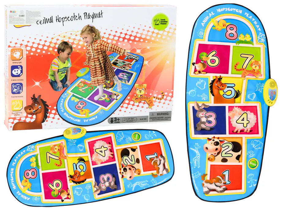 Największym atutem maty są jednak jej interaktywne elementy. Ośmiopunktowa siatka kwadratowych pól to prawdziwa kraina odkryć dla malucha. Każde pole ma przypisane inne zwierzątko i cyferkę. Po naciśnięciu jednego z pól, dziecko zostanie obdarzone radosnym dźwiękiem wydawanym przez zwierzątko, co dodatkowo motywuje do eksploracji i nauki.