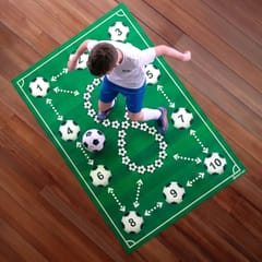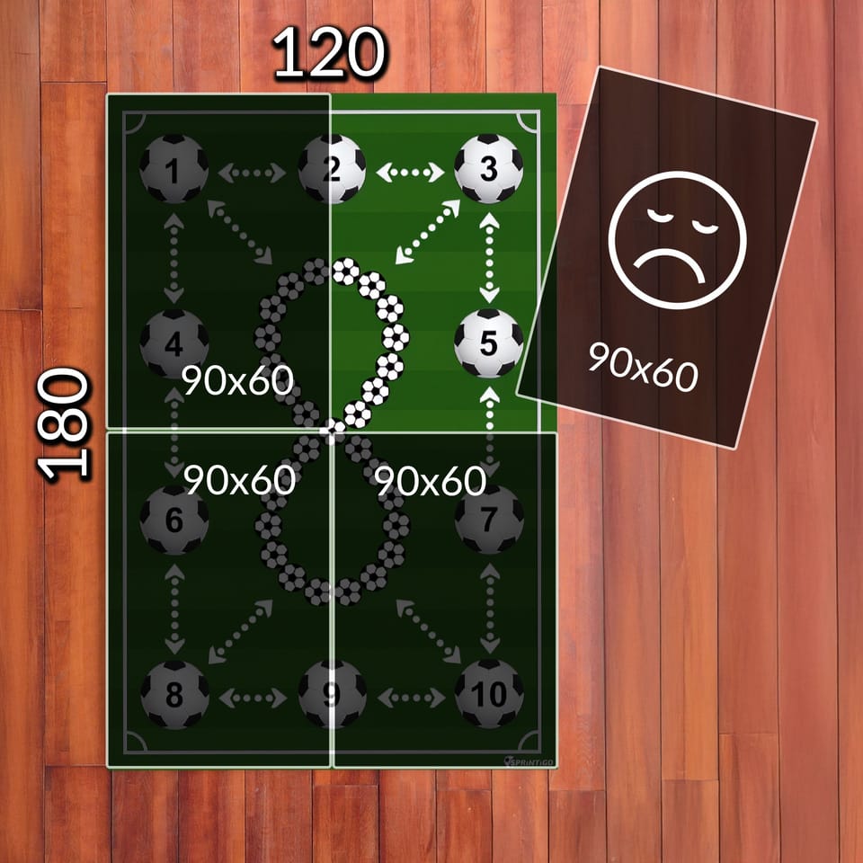 Stworzona z myślą o piłkarskiej pasji Mata piłkarska Sprintigo powstała dla wszystkich, którzy kochają piłkę nożną – od dzieci, przez młodzież, aż po dorosłych. Pozwala trenować w domu, na podwórku, w ogrodzie, w sali gimnastycznej lub wszędzie tam, gdzie można aktywnie bawić się z piłką. Dzięki niej każdy może „wejść na boisko”, nawet gdy prawdziwe boisko jest daleko.Regularne korzystanie z maty pomaga budować kontrolę nad piłką, rozwija szybkość reakcji, pewność ruchu, koordynację i balans. Wspiera zdrowy rozwój fizyczny i rozwija technikę piłkarską - poprzez zabawę, w atrakcyjny, sprawiający radość i zachęcający do działania sposób. Rozmiar XXL, który naprawdę robi różnicę Większość mat dostępnych na rynku ma zaledwie 90x60 cm – to format, na którym trudno wykonać jakiekolwiek dynamiczne ćwiczenia z piłką. Mata do treningu piłki nożnej Sprintigo ProMat została zaprojektowana z rozmachem: jej imponujące 180x120 cm dają prawdziwą przestrzeń do prowadzenia piłki, dryblingu i pełnych sekwencji treningowych.To aż 4x większa powierzchnia treningowa, dzięki której ćwiczenia są naturalne, swobodne i dużo bardziej zbliżone do realnego ruchu na boisku. Stabilność i bezpieczeństwo podczas treningu Duży rozmiar jest ważny - ale liczy się także komfort i bezpieczeństwo. Mata do piłki Sprintigo posiada antypoślizgową powierzchnię, która utrzymuje pozycję nawet podczas szybkich zmian kierunku. Jest również amortyzująca, a jej grubość przewyższa wiele konkurencyjnych modeli, co zwiększa bezpieczeństwo stawów i pozwala trenować dłużej bez obciążenia. Profesjonalny trening w przyjemny sposób Specjalny układ grafik i kierunków ruchu pozwala trenować prowadzenie piłki, drybling, kontrolę nad futbolówką, koordynację, balans i zwinność. Sekwencje oparte na ósemkach oraz zmianach kierunku rozwijają pracę nóg tak, jak podczas profesjonalnych treningów. Mata do ćwiczeń to idealne narzędzie, aby „trenować jak profesjonalista” – w domu, zawsze kiedy chcesz. Prezent dla młodego piłkarza Mata do piłki nożnej Sprintigo ProMat to prezent, który naprawdę cieszy. Nie tylko świetnie wygląda w pokoju młodego zawodnika, niczym dywan piłkarza, ale przede wszystkim daje mu nowe możliwości rozwoju. Inspiruje do ruchu, zachęca do samodzielnych treningów i pozwala doskonalić technikę w domu, bez względu na pogodę. To podarunek, który wspiera pasję, buduje pewność siebie i motywuje do dalszej gry - dokładnie taki, jaki powinien dostać ktoś, kto kocha piłkę nożną.