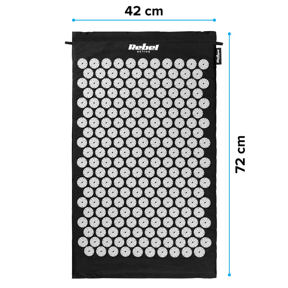 Mata zdrowotna z kolcami do akupresury z poduszką, 72x42cm, szare kolce, Rebel Active