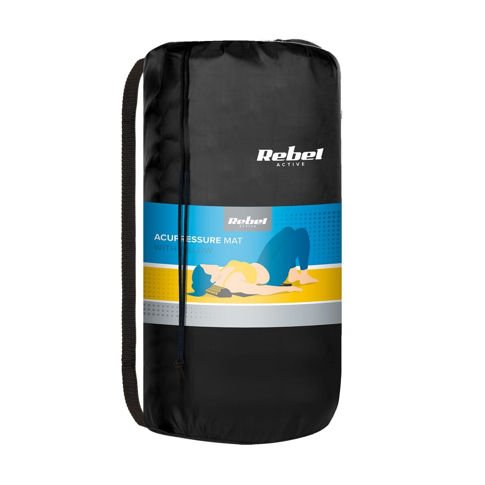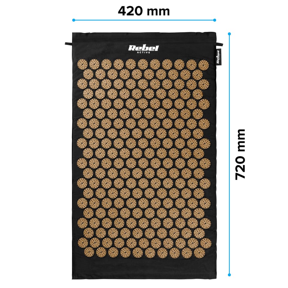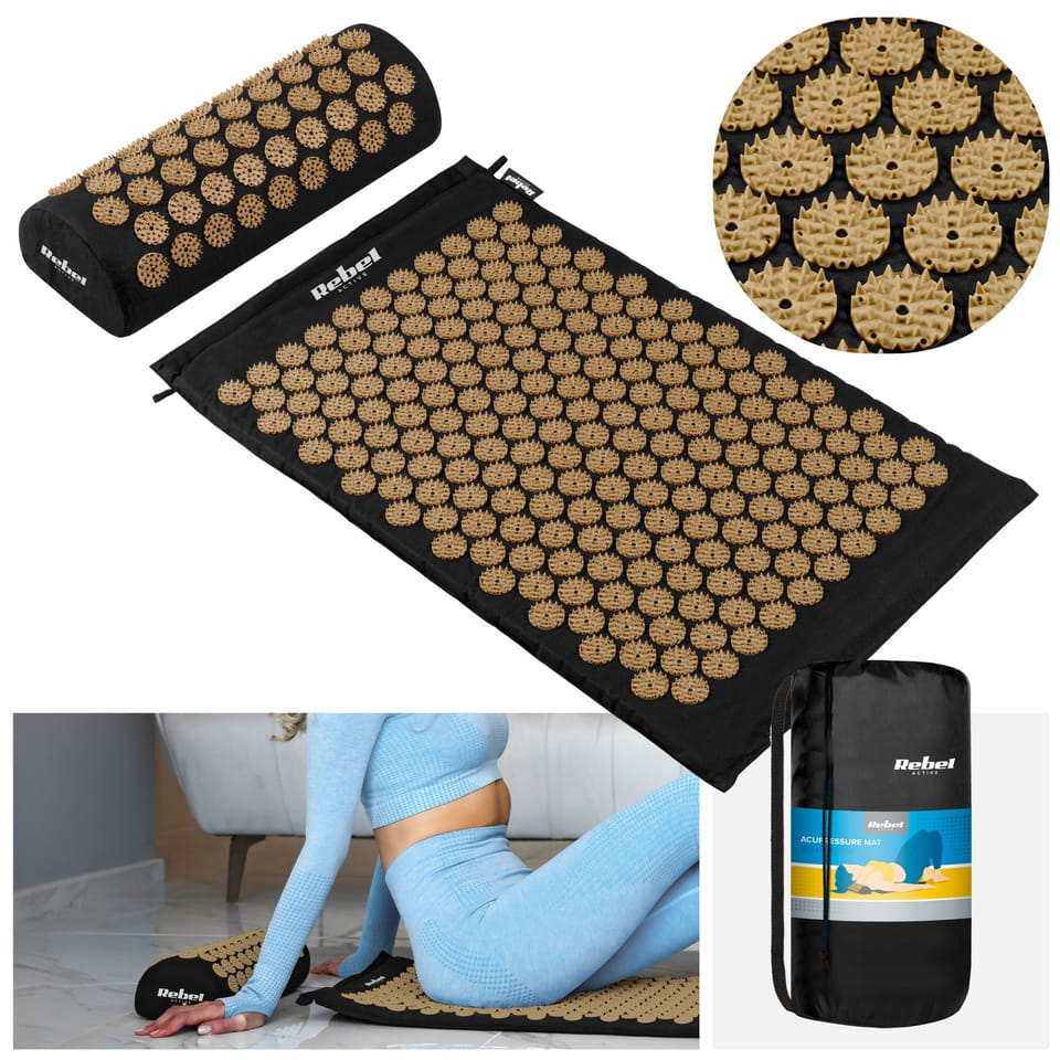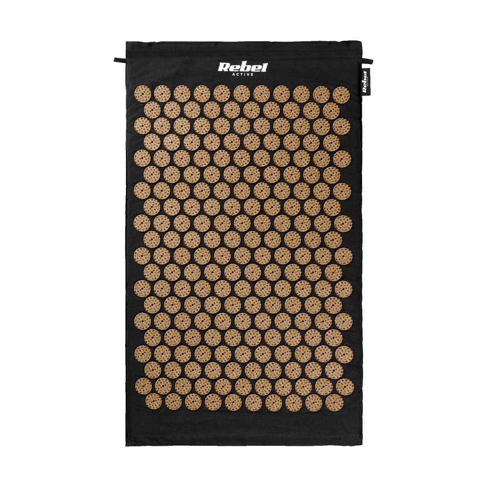 Mata zdrowotna z kolcami do akupresury z poduszką, 72x42cm, złote kolce, Rebel Active