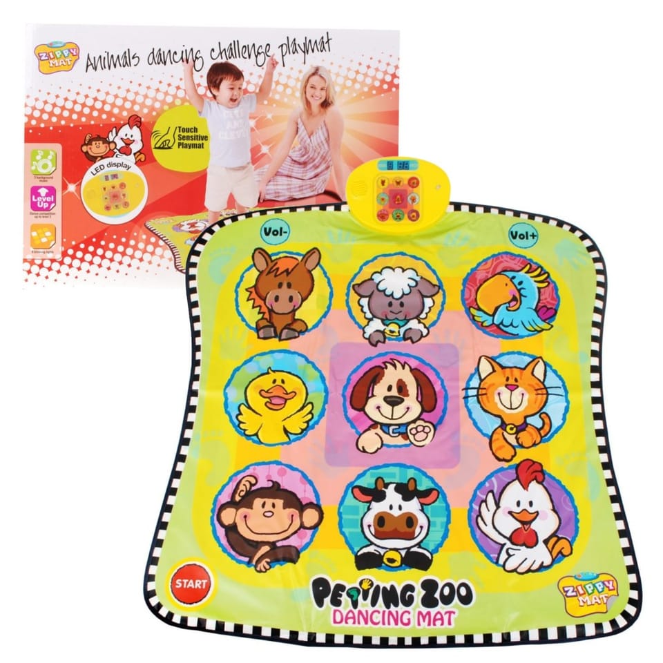 | Głównym zadaniem jest utrzymanie równowagi, stojąc na rękach i stopach, na co raz to innych kolorowych polach maty z określonymi podobiznami zwierzaków. Zadaniem graczy jest umieszczanie dłoni i stóp na wskazanym przez panel sterujący zwierzaku na macie. Jeśli w twistera gra więcej niż dwóch graczy gra stanie się jeszcze ciekawsza. W takim przypadku, można wykonywać ruchy na zmianę - będzie trudniej i ciekawiej. Gdy gra więcej osób można podzielić się na drużyny. Gra posiada 3 poziomy. Całą uwagę należy skupić na panelu sterowania, który wskazuje pole ze zwierzątkiem które należy nacisnąć. W każdym z poziomów zwiększa się stopień trudności. Panel sterowania zawiera ekran, głośnik oraz włącznik "on/off". Mata posiada regulację głośności oraz przycisk "start", za pomocą którego można uruchomić poszczególne poziomy. | |