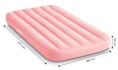 Materac welurowy INTEX o wymiarach 157x88x18 cm jest idealny do wypoczynku 1 osoby. Jego wielkość i kolorystyka sprawiają, że to idealny model dla dziecka. Wykonany z wytrzymałego tworzywa PVC został pokryty przyjemnym w dotyku, wodoszczelnym materiałem welurowym. Różowa kolorystyka z całą pewnością przypadnie do gustu dziewczynkom i stanie się ich ulubionym miejscem do odpoczynku.