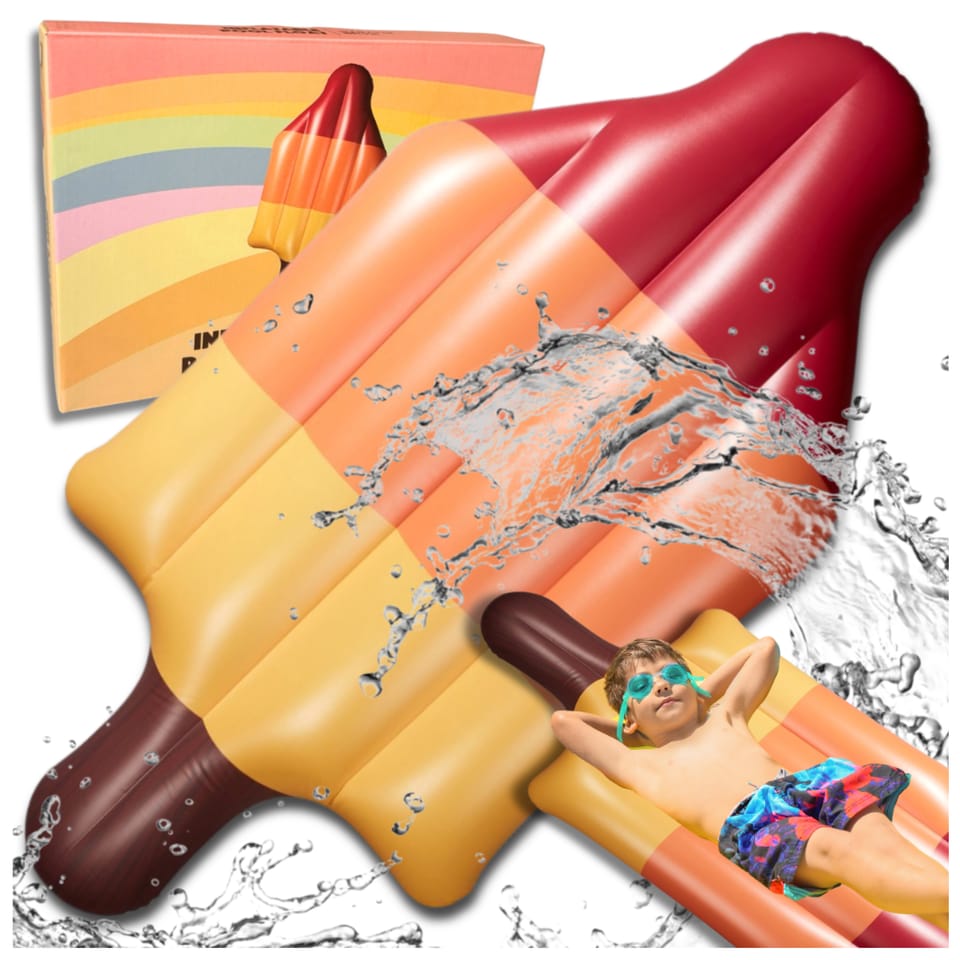 Jeśli nie wyobrażasz sobie letniego wypoczynku bez wody, zainwestuj w wygodny i praktyczny produkt jakim jest wielkokolorowy dmuchany materac w kształcie loda na patyku. Jest to jeden z najpopularniejszych produktów, który sprawi, że będziesz na nim odpoczywać a zarazem świetnie się bawić.
