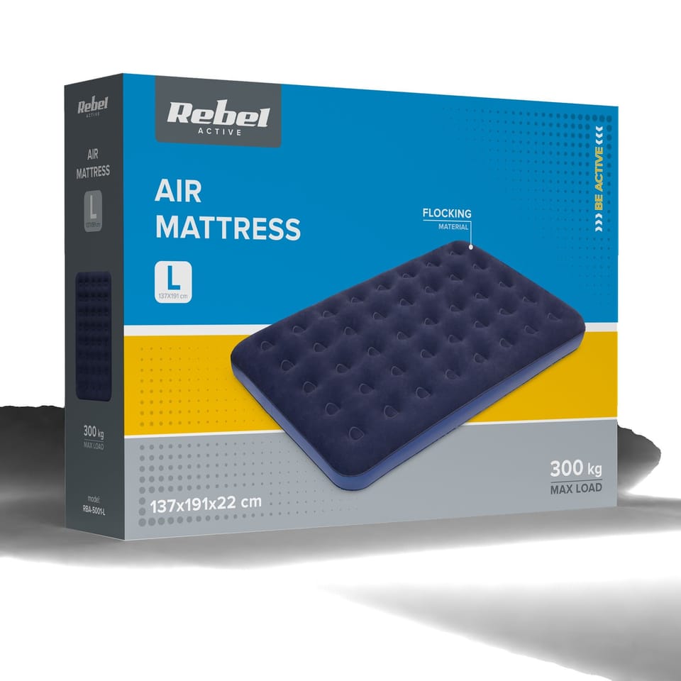 Materiał: PVC, welurKonstrukcja: jednokomorowaDo użytku wewnątrz i na zewnątrzSzerokość: 130 cmDługość: 186 cmWysokość: 22 cmMaksymalne obciążenie: 200 kgW zestawie: pompka ręczna, zestaw naprawczyWaga: 3,1 kg