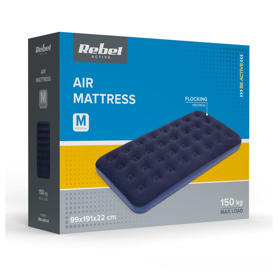 Materiał: PVC, welurKonstrukcja: jednokomorowaDo użytku wewnątrz i na zewnątrzSzerokość: 96 cmDługość: 186 cmWysokość: 22 cmMaksymalne obciążenie: 200 kgW zestawie: pompka ręczna, zestaw naprawczyWaga: 2,1 kg