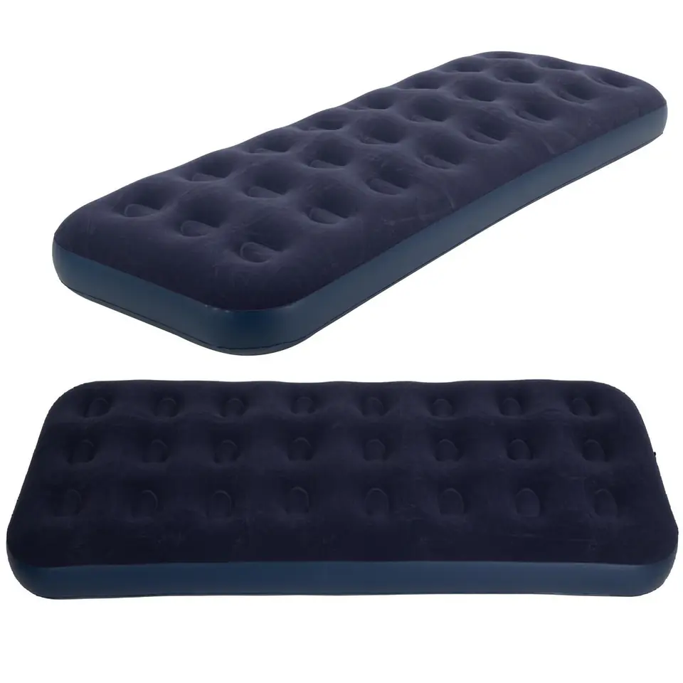 - dobrej jakości materiał PVC sprawia, że jest mocny i wytrzymałykonstrukcja materaca zapewni doskonałą stabilność i wysoki poziom komfortuflokowany wierzch materaca, przypominający welur zapobiegnie zsuwaniu się pościeli i jest przyjemny w dotykuwodoodporna powierzchnia wykonana z hydrofobowego winylu zapewni suche miejsce do spanianadaje się do użycia wewnątrz i na zewnątrz pomieszczeniaposiada bezpieczny zawór szybkiego pompowania i wypompowania powietrza