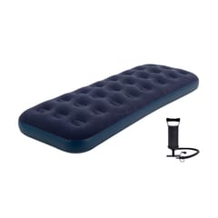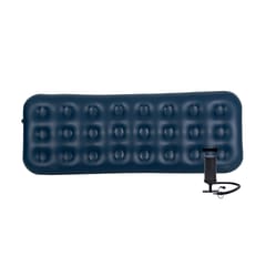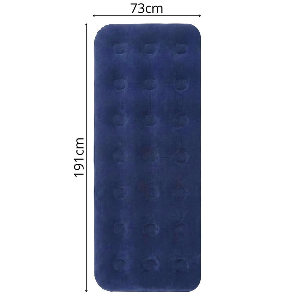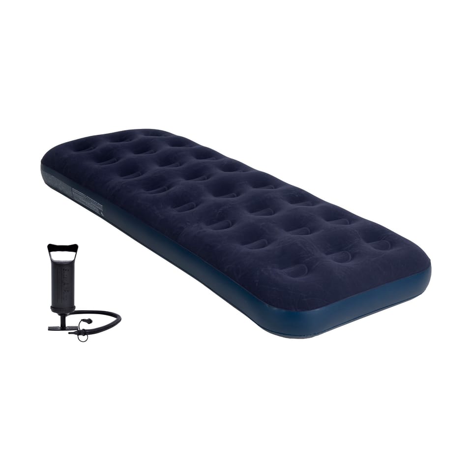 MATERAC FLOKOWANY 1 OSOBOWY 191X73X22CM Z POMPKĄ 2W1 jest wykonany z wysokiej jakości materiału PVC co gwarantuje Ci lub Twoim znajomym doskonały komfort spania w podróży lub w domu. Ponadczasowość kolorów i wzornictwa sprawia, że materac jest odpowiedni zarówno dla młodszych jak i starszych użytkowników. Idealny do spania w różnych okolicznościach, na kempingu, pod namiotem, na plaży, na wycieczce kamperem lub podczas wizyty u przyjaciół. Materac umożliwia spokojny sen w komfortowych warunkach.Flokowany wierzch materaca zapewnia nie tylko miękkość i dodatkowy komfort ale też zapobiega zsuwaniu się pościeli. Powierzchnia jest przyjazna dla skóry, miękka i jednocześnie hydrofobowa. Stabilna konstrukcja belki zwojowej (rurowa konstrukcja) zapewnia doskonałą stabilność oraz wysoki poziom bezpieczeństwa.MATERAC FLOKOWANY 1 OSOBOWY 191X73X22CM Z POMPKĄ 2W1 jest bardzo poręczny, złożony zajmuje mało miejsca, zmieści się do każdego plecaka lub do walizki.