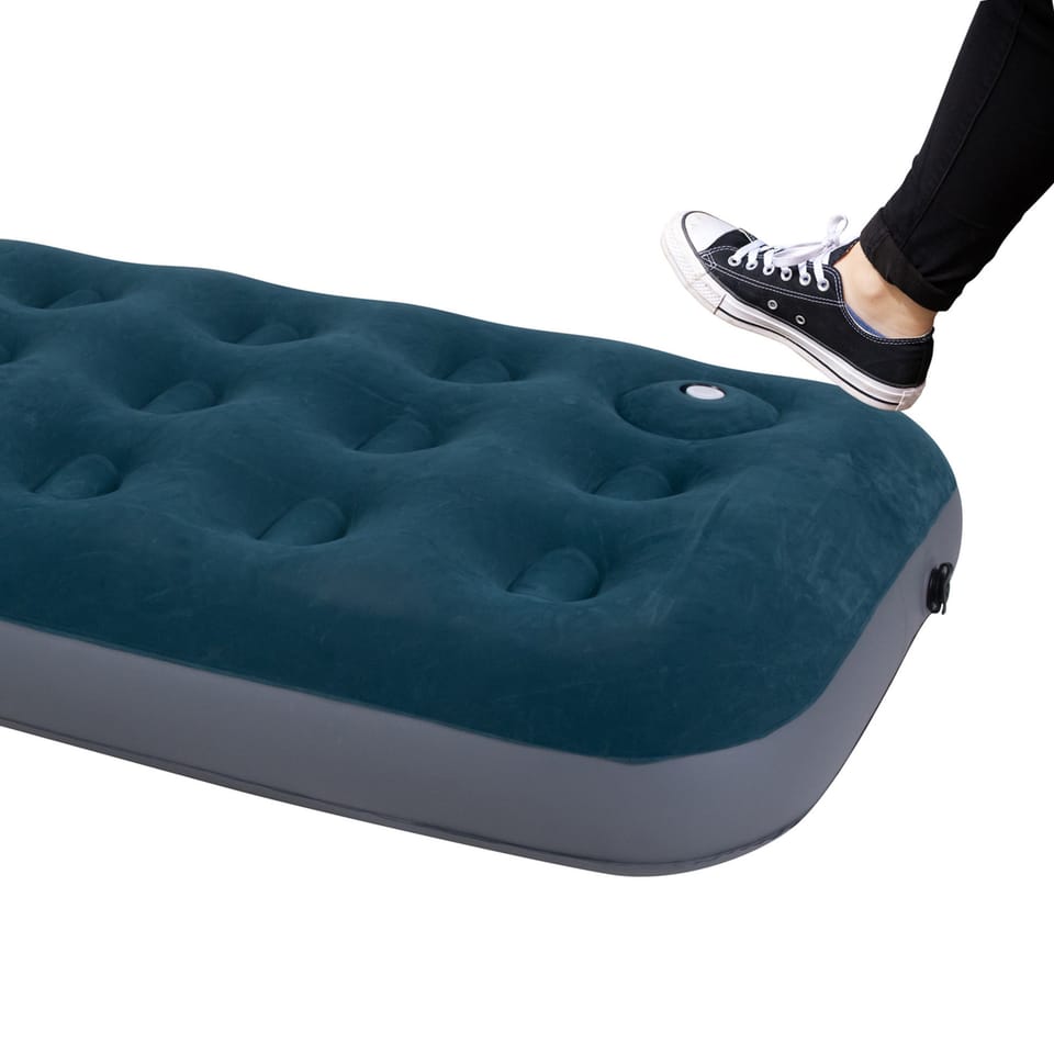 MATERAC FLOKOWANY 1-OSOBOWY Z WBUDOWANĄ POMPKĄ NOŻNĄ 191x73x22 cm 24130 jest doskonały nie tylko do spania, ale także do odpoczynku na plaży, relaksu na tarasie czy pikniku w parku. To wszechstronny produkt, który sprawdzi się w każdej sytuacji.