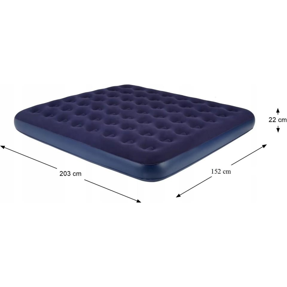- Wymiary pojedynczego materaca po napompowaniu ok.: 203 x 152 x 22 cm (dł. x szer. x wys.) Są to wymiary maksymalne przy optymalnym ciśnieniu, wilgotności i temperaturze. W warunkach domowych wymiary te mogą się różnić o kilka centymetrów. Dopuszczalny spadek powietrza do 5% dziennie.Wymiary opakowania: 27 x 11 x 37 cm (szer. x gł. x dł.)Waga netto ok.: 3 kgWaga brutto ok: 3,25 kgMateriał: PVC Kolor: GranatowyŁatka naprawcza: TakPompka w zestawie: NieMaksymalne obciążenie: 200 kgMarka: Avenli
