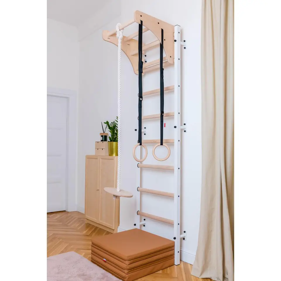 Materac gimnastyczny składa się z 3 połączonych ze sobą miękkich kwadratowych materaców. Jest odpowiedni do wszystkich ćwiczeń gimnastycznych.Materac gimnastyczny został wykonany z ekologicznych materiałów. Nie ma zapachu. Pokrycie materaca stanowi eko-skóra w odcieniach szarości. Taka kolorystyka świetnie wkomponuje się do wystroju dziecięcego pokoju. Materac odgrywa bardzo ważną rolę, jaką jest ochrona dzieci przed otarciami i urazami podczas wykonywania różnych ćwiczeń na drabince. Jego przeznaczeniem jest zapewnienie bezpieczeństwa podczas ćwiczeń, ale można wykorzystać go także, jako siedzisko podczas zabawy dla dzieci. Materac może nam służyć zarówno w zestawie z wielofunkcyjną drabinką gimnastyczną jak i oddzielnie. Może być wykorzystywany również przez rodziców przy wykonywaniu ćwiczeń na twardym podłożu (np. brzuszków) lub podczas innych aktywności, takich jak joga czy fitness. Materac po złożeniu nie zajmuje wiele miejsca. Można umieścić go w górnej części drabinki gimnastycznej.Parametry:• długość: 180 cm• szerokość: 60 cm• grubość: 8 cm• waga: 2,5 kg• pokrycie: 100% eko-skóra• kolorystyka: Brązowy• wypełnienie: pianka poliuretanowa o gęstości T25 (średnio twarda)• gwarancja: 2 lata• produkt Polski• Seria BenchK Gymnastic Mat• produkt z atestemInstrukcja obsługi:-nie myć, nie wybielać, nie suszyć w pralce, nie prasować, nie prać chemicznie