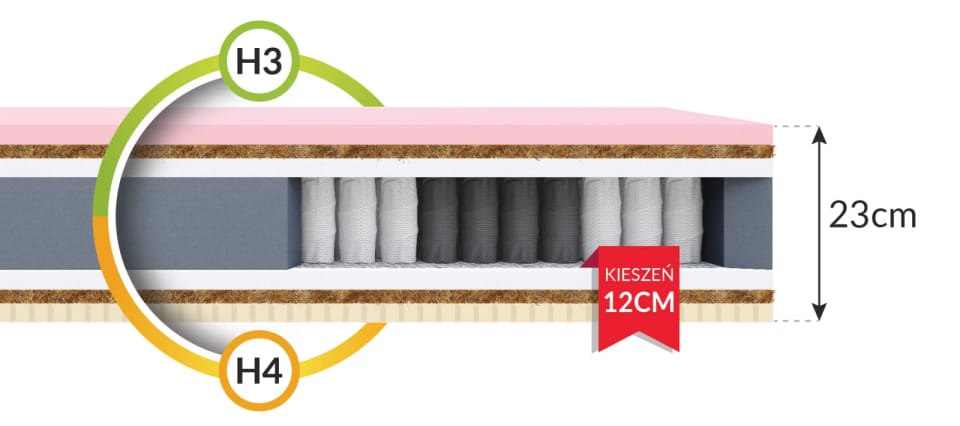 Materac kieszeniowy NARNI visco, lateks, kokos - 160 x 200 - 23 cm