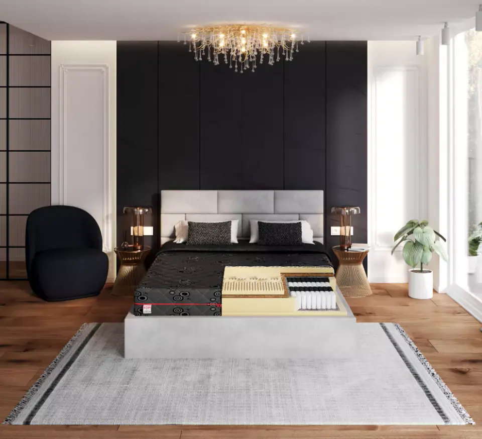 Materac kieszeniowy NEON Pianka poliuretanowa – stabilność i trwałość przez długie lata Sprężyny kieszeniowe - równomierne rozłożenie ciężaru ciała Pianka wysokoelastyczna HR - sprężystość, komfort i wytrzymałość Wkład kokosowy – higiena i prawidłowe podparcie sylwetki Pokrowiec JACQUQRD – czarny, zdejmowany, z możliwością prania Materac posiada certyfikat OEKO-TEX® Standard 100 – klasa I, czyli najwyższy poziom bezpieczeństwa w tej kategorii. To gwarancja, że wszystkie komponenty użyte do jego produkcji – od pianek, przez kleje, aż po tkaniny pokrowca, szwy i zamek błyskawiczny – zostały przebadane pod kątem obecności substancji szkodliwych i są w pełni bezpieczne podczas użytkowania materaca. Kupując ten materac, wybierasz jakość potwierdzoną rygorystycznymi normami – idealną dla tych, którzy cenią zdrowie i bezpieczeństwo najbliższych.