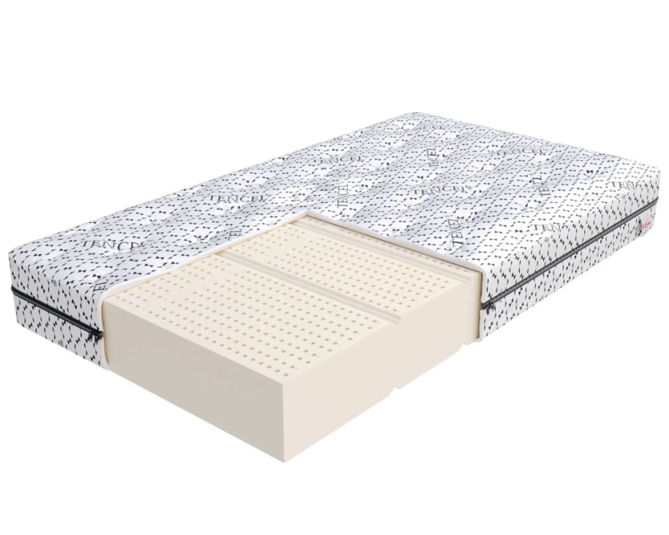 Materac lateksowy VALORE Materace lateksowe zapewniają wysoki komfort osobom ceniącym spokojny sen, lateks jest bardzo sprężysty, przez co nie ulega deformacji, jest wyjątkowo trwały i wygodny Lateks to doskonała cyrkulacja powietrza zapewnia przyjemne uczucie chłodu przez całą noc. Lateks zapewnia lepsze podparcie kręgosłupa niż klasyczna pianka poliuretanowa Lateks jest antyalergiczny, naturalnie chroni przed bakteriami, pleśnią i grzybami. Nie pochłania nieprzyjemnych zapachów, jest zapachowo neutralny Pokrowiec TENCEL CARO – zdejmowany, wyposażony w zamek błyskawiczny; wykonany z włókien eukaliptusowych, antyalergiczny, doskonale odprowadzający wilgoć, pikowany, gładki i wyjątkowo przyjemny w dotyku. Materac posiada certyfikat OEKO-TEX® Standard 100 – klasa I, czyli najwyższy poziom bezpieczeństwa w tej kategorii. To gwarancja, że wszystkie komponenty użyte do jego produkcji – od pianek, przez kleje, aż po tkaniny pokrowca, szwy i zamek błyskawiczny – zostały przebadane pod kątem obecności substancji szkodliwych i są w pełni bezpieczne podczas użytkowania materaca. Kupując ten materac, wybierasz jakość potwierdzoną rygorystycznymi normami – idealną dla tych, którzy cenią zdrowie i bezpieczeństwo najbliższych.