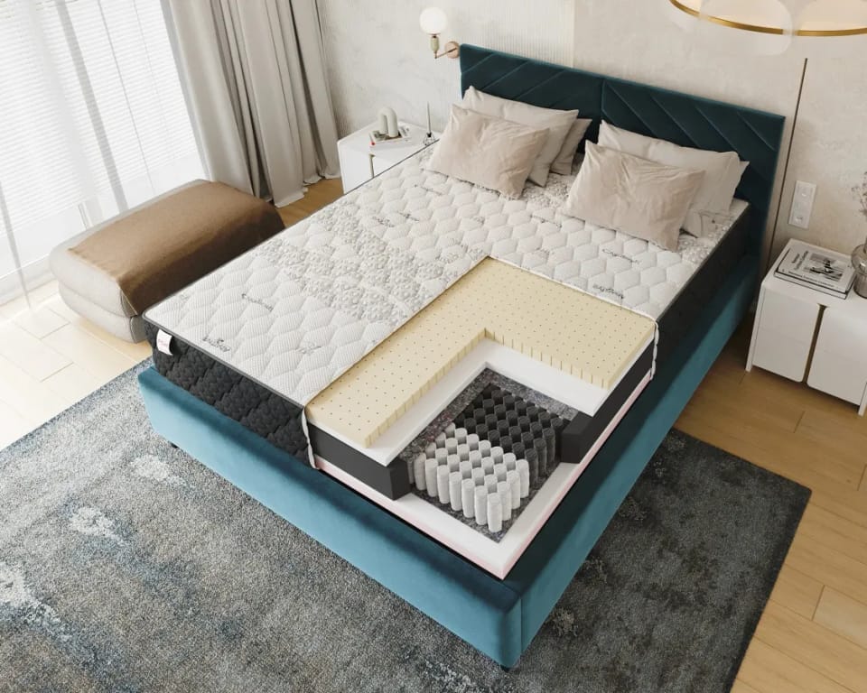 Materac multipocketowy COMFORT Sprężyny multipocket, 510 sprężyn/m², lateks, pianka memory, pianka, pokrowiec do prania - 160 x 200 - H2 średnio miękki - 31 cm