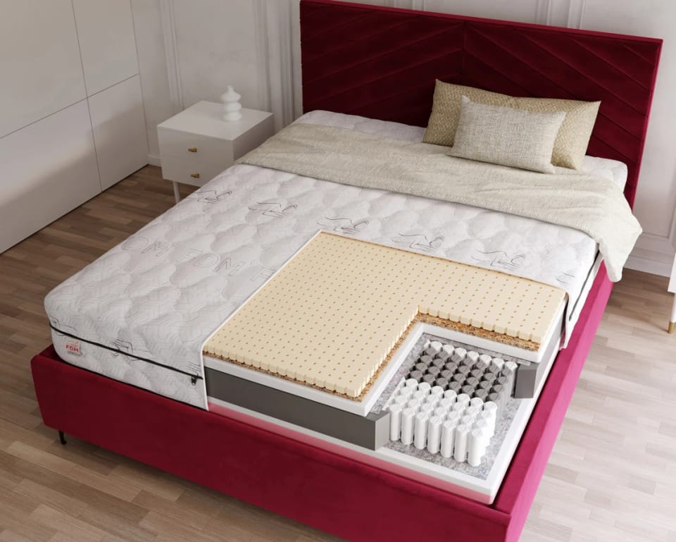 Materac multipocketowy VENETO Sprężyny multipocket , 510 sprężyn/m², lateks, pianka memory, pianka, kokos, pokrowiec do prania - 100 x 200 - H4 twardy / H3 średnio twardy - 22 cm