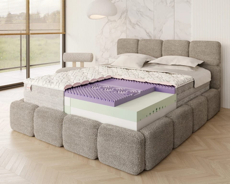 Materac piankowy AVELLINO Materac zaprojektowany specjalnie dla par – dla dwóch osób o różnej wadze, sylwetce i wzroście Możliwość wyboru twardości – wkład podzielony na dwie części pozwala dostosować twardość do indywidualnych potrzeb Konstrukcja modułowa – obracając jedna połowę lub drugą góra-dół, można wybrać bardziej miękkie lub twarde podłoże Pianka wysokoelastyczna HR 30 - sprężystość, komfort i wytrzymałość (miękka strona) Pianka wysokoelastyczna HR 44 – elastyczność, trwałość i wygoda (twarda strona) Pianka termoplastyczna SERENEⓇ - wsparcie dla kręgosłupa, uczucie lekkości i regenerujący, głęboki sen Materac jest dostępny także w wersji i rozmiarach dla singli Materac posiada certyfikat OEKO-TEX® Standard 100 – klasa I, czyli najwyższy poziom bezpieczeństwa w tej kategorii. To gwarancja, że wszystkie komponenty użyte do jego produkcji – od pianek, przez kleje, aż po tkaniny pokrowca, szwy i zamek błyskawiczny – zostały przebadane pod kątem obecności substancji szkodliwych i są w pełni bezpieczne podczas użytkowania materaca. Kupując ten materac, wybierasz jakość potwierdzoną rygorystycznymi normami – idealną dla tych, którzy cenią zdrowie i bezpieczeństwo najbliższych.