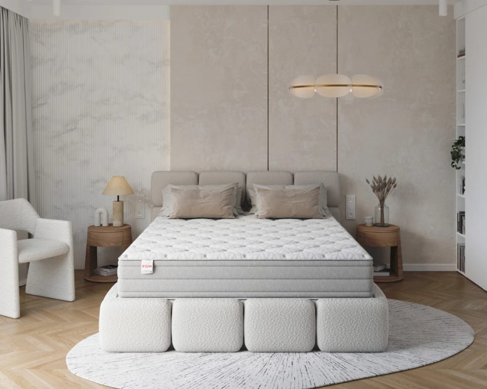 Materac piankowy AVELLINO Materac zaprojektowany z myślą o parach – idealne rozwiązanie dla dwóch osób o różnej wadze i preferencjach snu Indywidualny wybór twardości – podzielony wkład pozwala dopasować komfort każdej stronie niezależnie Modułowa konstrukcja – obracając wybraną połowę góra–dół, z łatwością zmienisz twardość podłoża Pianka wysokoelastyczna HR30 – sprężysta, komfortowa i trwała warstwa po stronie bardziej miękkiej Pianka wysokoelastyczna HR44 – zwiększona stabilność, odporność i wygoda po stronie twardszej Pianka termoplastyczna SERENE® (45 kg/m³) – zachowuje miękkość i elastyczność niezależnie od temperatury Pokrowiec NANO JERSEY BORDER VISCO – zdejmowany, z zamkiem błyskawicznym, z dodatkiem pianki visco w poszyciu Dostępny również w rozmiarach dla singli – ten sam komfort i technologia także dla osób śpiących solo Materac posiada certyfikat OEKO-TEX® Standard 100 – klasa I, czyli najwyższy poziom bezpieczeństwa w tej kategorii. To gwarancja, że wszystkie komponenty użyte do jego produkcji – od pianek, przez kleje, aż po tkaniny pokrowca, szwy i zamek błyskawiczny – zostały przebadane pod kątem obecności substancji szkodliwych i są w pełni bezpieczne podczas użytkowania materaca. Kupując ten materac, wybierasz jakość potwierdzoną rygorystycznymi normami – idealną dla tych, którzy cenią zdrowie i bezpieczeństwo najbliższych.