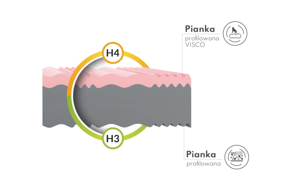 Materac piankowy DYNAMIC Pianka profilowana memory, pianka profilowana, pokrowiec do prania - 140 x 200 - H4 twardy / H3 średnio twardy - 22 cm