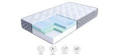 Materac piankowy NORDIC Pianka termoplastyczna VISCO BUBBLEGUM – idealne podparcia ciała i kręgosłupa Wysokoelastyczna pianka NATURALIS – doskonała wytrzymałość i stabilność Pianka HR H30 – o podwyższonej sprężystości i trwałości Pokrowiec SILVERCARE COSIDO – elegancki i przyjemny w dotyku Doskonale oddychający – skuteczna wentylacja wkładu materaca Materac posiada certyfikat OEKO-TEX® Standard 100 – klasa I, czyli najwyższy poziom bezpieczeństwa w tej kategorii. To gwarancja, że wszystkie komponenty użyte do jego produkcji – od pianek, przez kleje, aż po tkaniny pokrowca, szwy i zamek błyskawiczny – zostały przebadane pod kątem obecności substancji szkodliwych i są w pełni bezpieczne podczas użytkowania materaca. Kupując ten materac, wybierasz jakość potwierdzoną rygorystycznymi normami – idealną dla tych, którzy cenią zdrowie i bezpieczeństwo najbliższych.