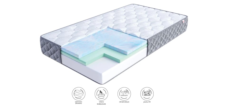 Materac piankowy NORDIC VISCO BUBBLEGUM, HR NATURALIS, HR H30 - 90 x 200 - H4 twardy / H3 średnio twardy - 24 cm