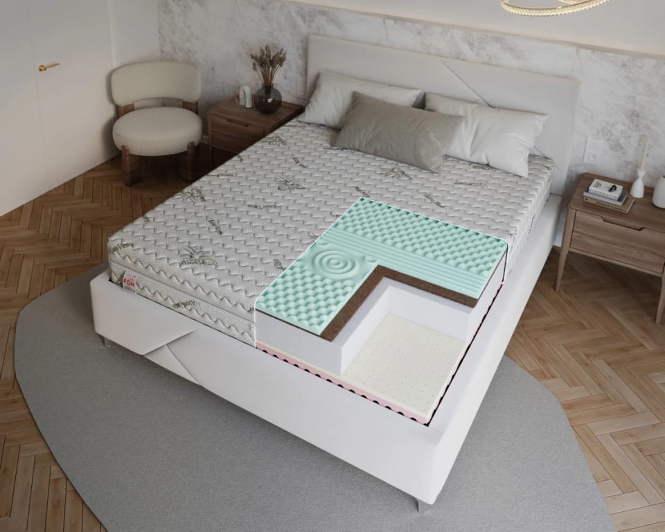 Materac piankowy SAVONA Pianka profilowana VISCO, HR, lateks, kokos - 80 x 200 - H4 twardy / H3 średnio twardy - 22 cm