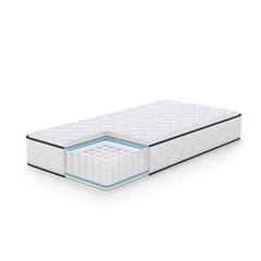 Materac sprężynowy o średniej twardości – H3 – dopasowuje się do kształtu pleców, zapewniając użytkownikom wysoki poziom komfortu podczas snu. Materac jest sprężysty, dobrze izoluje od podłoża i zapewnia odpowiednią cyrkulację powietrza. Optymalne maksymalne obciążenie na osobę to 100 kg.