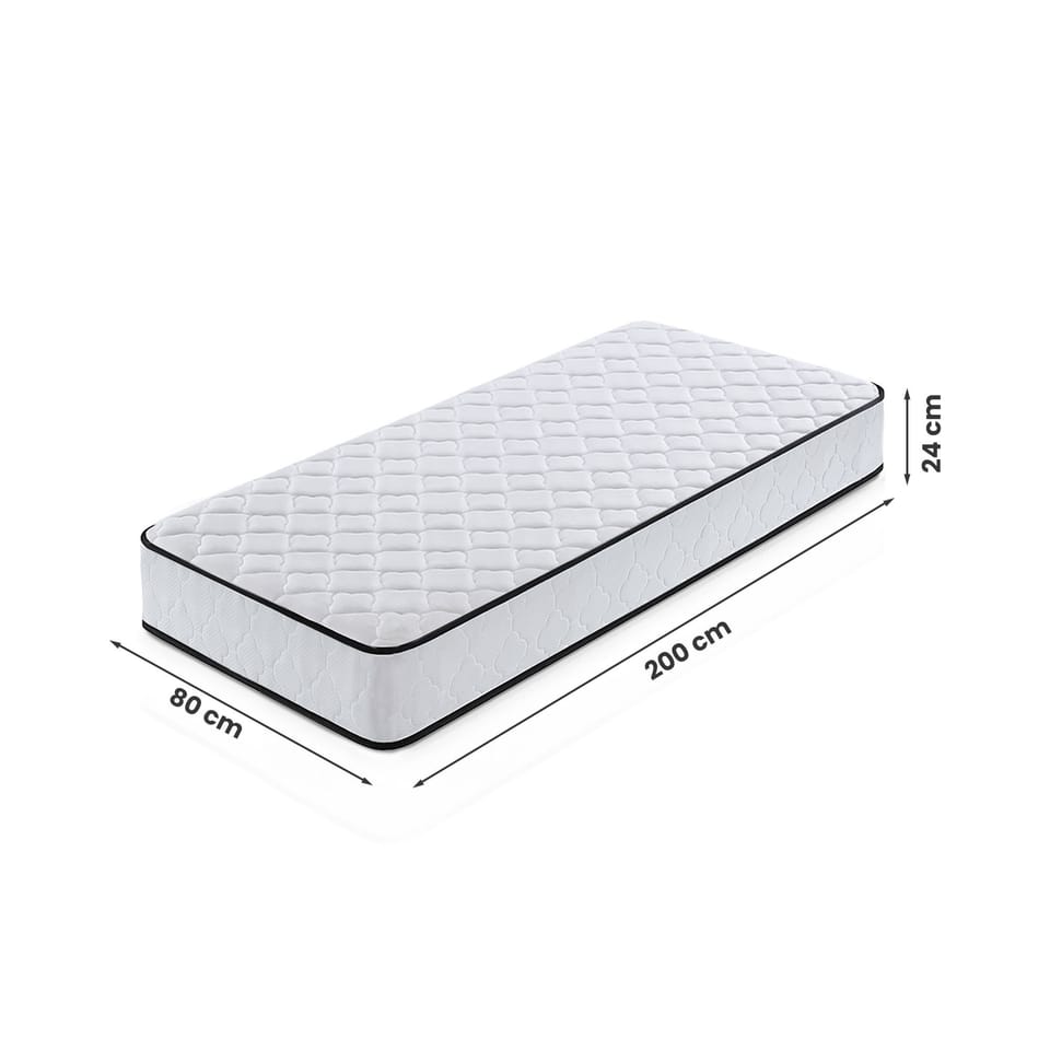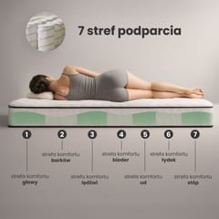 Materac sprężynowy o średniej twardości – H3 – dopasowuje się do kształtu pleców, zapewniając użytkownikom wysoki poziom komfortu podczas snu. Materac jest sprężysty, dobrze izoluje od podłoża i zapewnia odpowiednią cyrkulację powietrza. Optymalne maksymalne obciążenie na osobę to 100 kg.