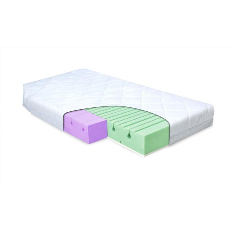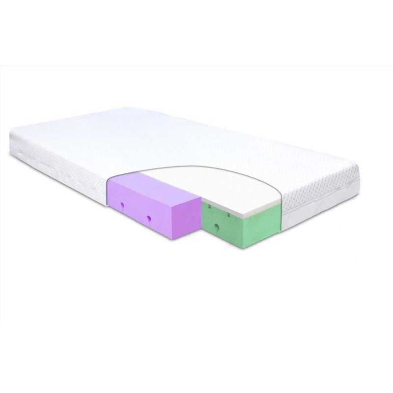 Materacyk Dual charakteryzuje się dwustronnością, gdzie jedna strona przeznaczona jest dla niemowlaka, a druga dla nieco starszych dzieci. Pokrowiec materaca posiada rozdzielczy bezpieczny zamek 360 stopni z możliwością użytkowania jednej podczas prania drugiej strony. Trójwarstwowa, puszysta i pikowana dzianina żakardowa z logo BabyMatex® na stronie A oraz chłonna dziadzina frotte po stronie B to kolejna zaleta materaca Dual. Dzianina żakardowa przeszywana jest srebrną nicią dodającą szyku całej konstrukcji. Wypełnienie stanowi pianka termoplastyczna z pamięcią kształtu Memory Foam dla idealnego dopasowania do kształtu ciała dziecka. Żaden rodzic nie chce aby jego dziecko pociło się podczas snu. W podpiankowych kanałach wentylacyjnych gromadzi się nadmiar pary i wilgoci, która odprowadzana jest na zewnątrz materaca. Dzięki belkom stabilizującym na bokach materacyka, zmniejszyliśmy ryzyko skręcenia kostki przez dziecko podczas stania na brzegu materaca. Dual podobnie jak inne nasze materace posiada status wyrobu medycznego oraz certyfikat Oeko Tex, a do jego klejenia użyto certyfikowanego spoiwa bezpiecznego dla skóry dziecka. Rozmiar: 60 x 120 x 10 cm Skład surowcowy: Pokrowiec: Strona A: 33% bawełna, 33% PES, 34% PA Strona B: 5% bawełna, 94% PES,1% Srebro Wypełnienie: pianka poliuretanowa