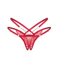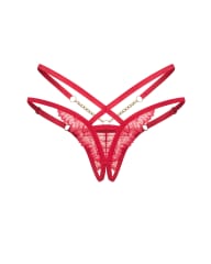 Matildea stringi otwarteCzerwone stringi z otwartym krokiem, wykonane z delikatnej koronki o finezyjnym motywie.Podwójne paski na biodrach – z regulacją w dolnej części – zapewniają idealne dopasowanie.Przód zdobią złote łańcuszki, okrągłe łączenia i subtelna zawieszka.Tył tworzy sieć pasków o efektownej, zmysłowej konstrukcji.Otwarte wykończenie w kroku dodaje całości odważnego charakteru.Otwarty krok dla wyjątkowych doznańKoronka z unikatowym motywemPodwójne paski na biodrach (dolne regulowane)Złote ozdobne detale (wolne od niklu)Skład: 90% poliamid, 10% elastanProdukt nieodpowiedni dla dzieci poniżej 3 lat – ryzyko zadławienia z powodu małych części.