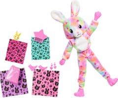 Barbie Cutie Reveal Color Dream to wyjątkowy zestaw z 10 niespodziankami w jednym opakowaniu, który zachwyca już od momentu rozpakowywania. W środku znajduje się pluszowy króliczek w kolorowym stroju w serduszka i wzór tie-dye, pod którym ukryta jest modna lalka Barbie z długimi czarnymi włosami z różowymi pasemkami. Zabawa obejmuje stylizację, akcesoria oraz magiczne efekty zmiany koloru.