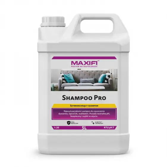 Maxifi Shampoo Pro to najnowszej generacji szampon do czyszczenia dywanów, wykładzin i tapicerek.
