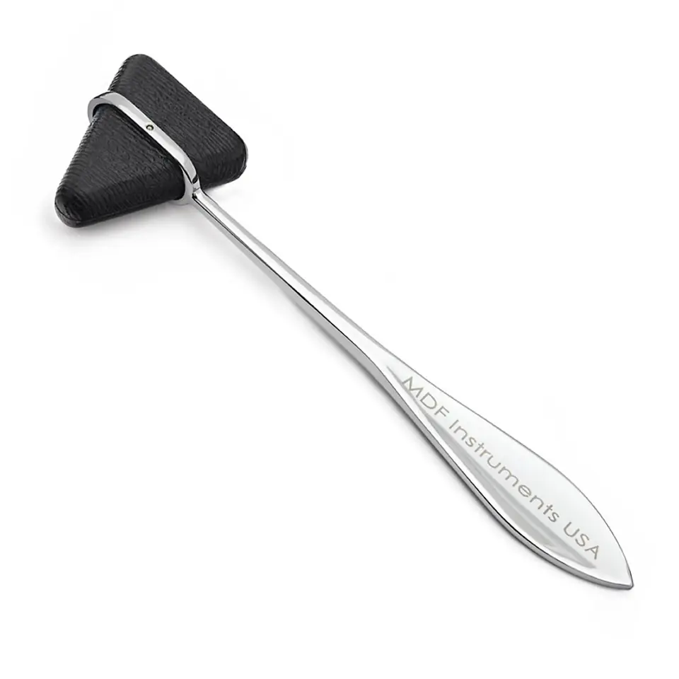 Młotek neurologiczny służy do badania głębokich odruchów ścięgnistych. Młotki neurologiczne pomagają w wykryciu nieprawidłowości w ośrodkowym i obwodowym układzie nerwowym. Głowica młotka neurologicznego Głowica wykonana jest z termoplastycznej gumy, nie zawierającej lateksu. Nadaje się również do opukiwania klatki piersiowej i brzucha. Wyważona rękojeść wykonana jest ze stopu cynku.