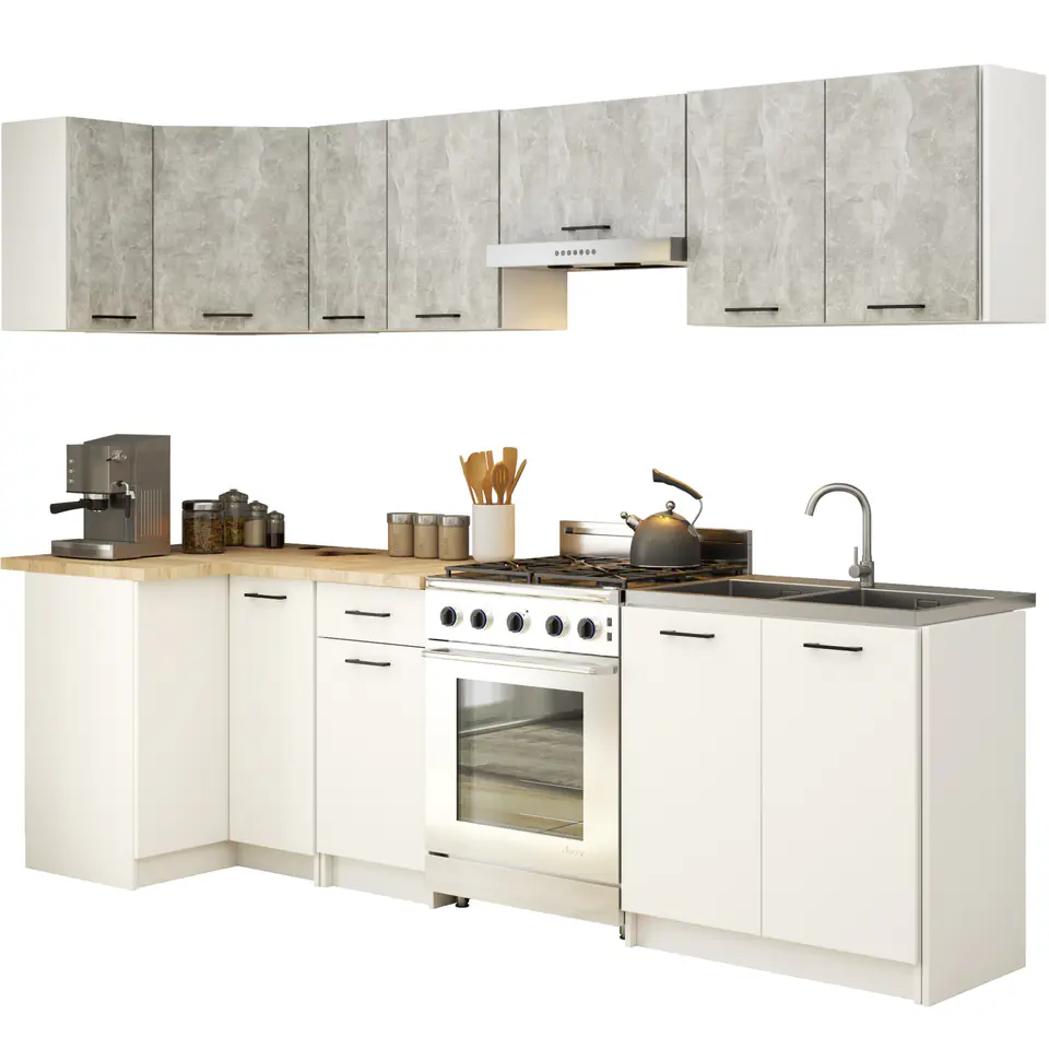 MEBLE KUCHENNE ZESTAW NAROŻNY OLIWIA 3M BETON-BIAŁY